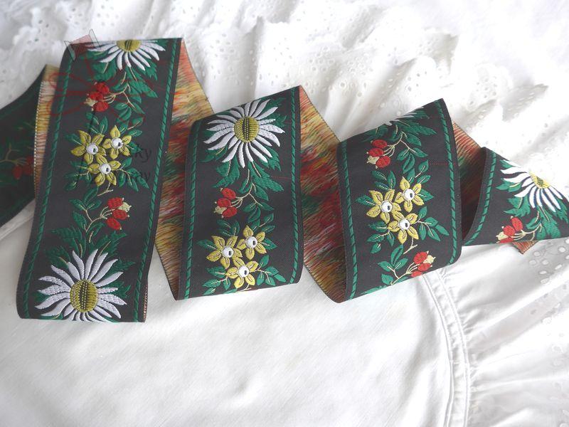 Stuha - Černá bílý květ se žlutýmiSkladem 6.5 m150 Kč/ m