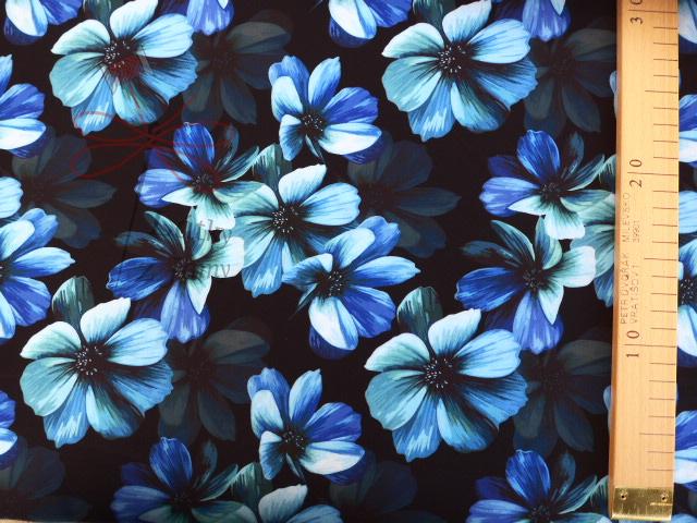 Funkční úplet 180g - Modré květy na černéSkladem 7.6 m339 Kč/ m