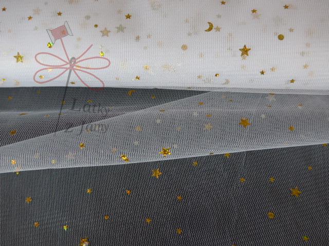 Tyl se zlatými hvězdičkami- bílý