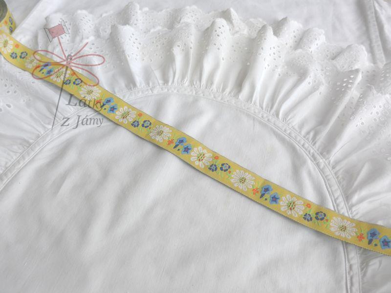 Stuha - Žlutá modré a bílé květySkladem 7.5 m35 Kč/ m